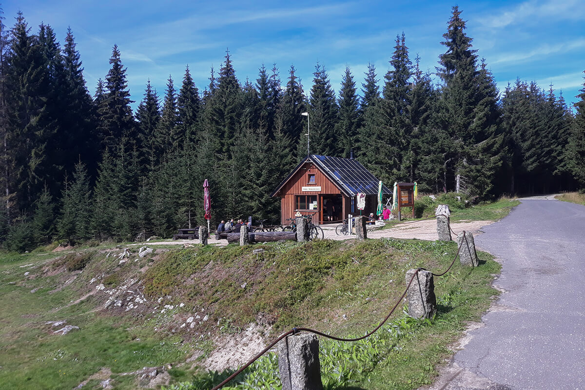 Pokračujeme dál po žluté, ale asi po půl kilometru odbočujeme na neznačenou Pašeráckou cestu. Ta nás zavede na zelenou značku a dáváme se po ní doprava. Po pár minutách se opět dostáváme na rozcestí, kde zelená směřuje doprava, ale my se vydáváme doleva, kde barva není značená. Nacházíme se na hřebenovce 22 po které se dostáváme na rozcestí Na knajpě. Zde je malý domeček, kde se můžeme opět občerstvit.