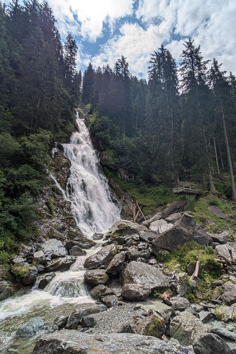 Milovníci Rakouska a milovníci vody nesmí chybět u vodopádu. Jeden 85m vysoký je 40 min od Westendorfu. Byli jsme zvědaví, jak se Sebík bude chovat. Vždycky když vidí vodu, tak se k ní hrne a tohle by mohla být poměrně zábava.