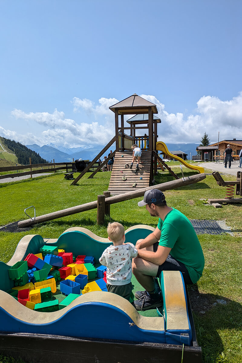 Přímo ve Westendorfu jsme využili lanovku Alpenrosenbahn I, II, která nás vyvezla do míst, kde se nachází zábavní park Alpinolino. Děti zde mohou hrát poznávací hru, jsou tu prolézačky a hlavně asi kilometr dlouhá dráha na dřevěnou kuličku.